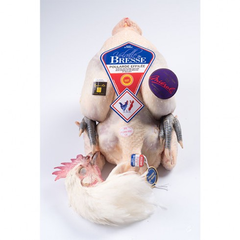 La poularde de Bresse est "la grande soeur de la poulette". Plus âgée, plus grosse, elle aura passée plus de temps en plein air que la poulette (4 à 5 mois) pour finir à l’engraissement en épinette. Toute femelle volaille de Bresse devient poulette puis poularde pour devenir finalement poule pondeuse. En fonction des saisons, le stade de poularde est donc complexe à appréhender. C'est pourquoi, peu nombreux sont les éleveurs à qui nous confions cet élevage très compliqué, car il faut réussir à mesurer ou anticiper les évolutions de la volaille. Leur savoir-faire est exceptionnel !