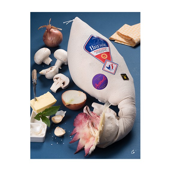 Aux couleurs de la France (plumage blanc, crête rouge et pattes bleutées) les poulets de Bresse bénéficient d'une vie en plein air entre 4 à 5 mois chez les éleveurs, ainsi que d'une alimentation 100 naturelle. Plus gros qu'une poulette et une poularde, sa chair est ferme et extrêmement goûteuse !
